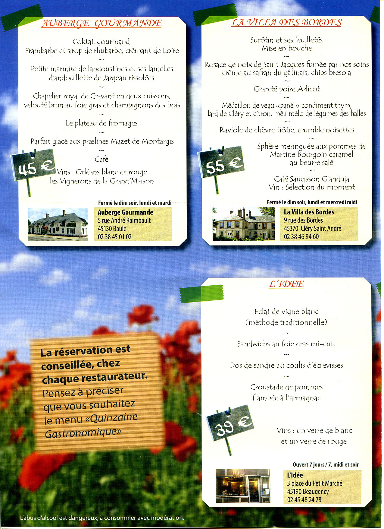 Quinzaine gastronomique en Région Centre Val de Loire dans le Loiret, à Baule Beaugency Meung-sur-Loire